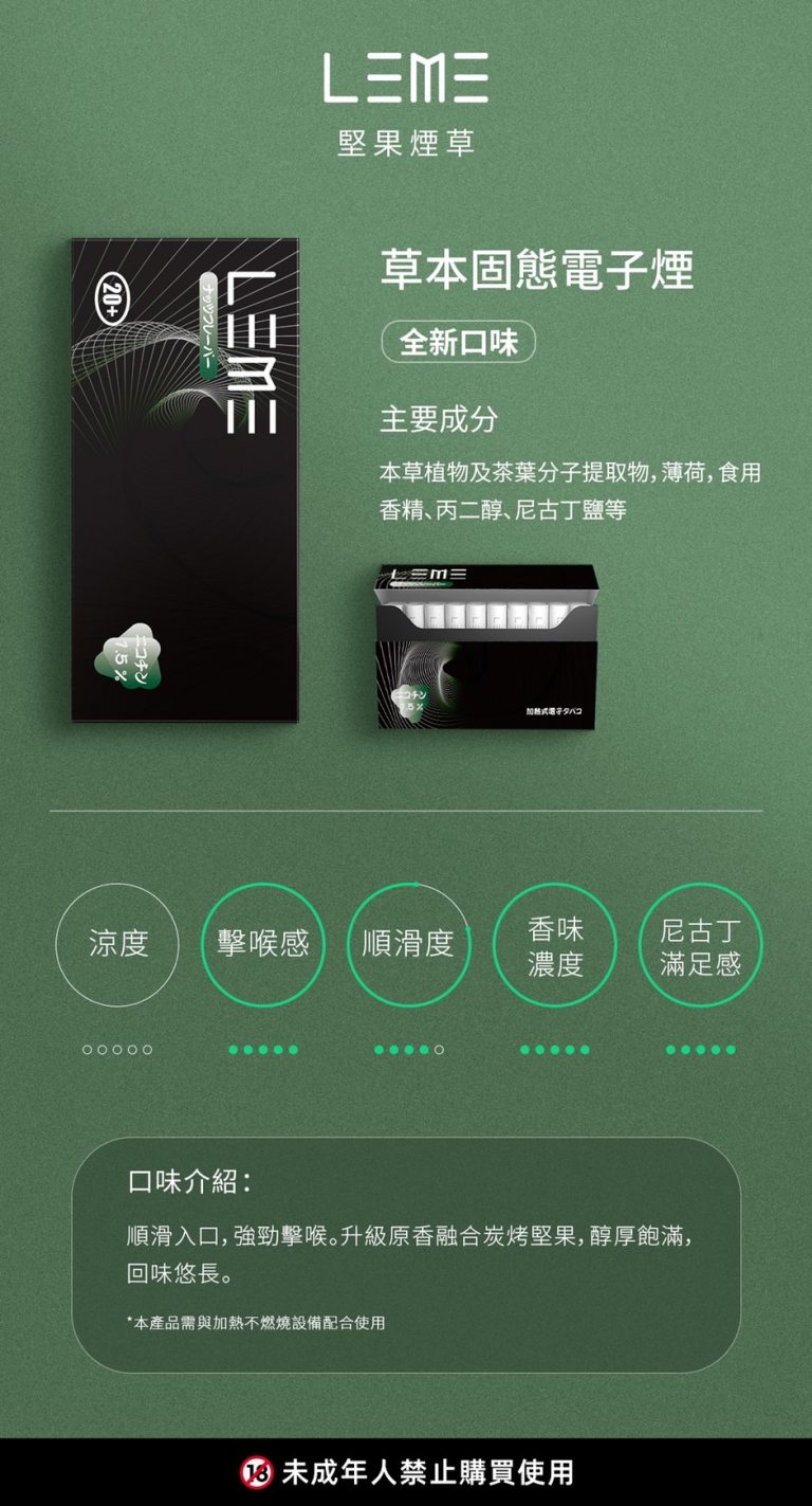 LEME 樂美,係一款由日本研發的 Heat-None-Burn(加熱不燃燒、加熱菸 購買加 LINE ID : yun9370)非菸草類產品,由茶葉取代傳統的菸草;與大家熟知的iQOS規格大致相同,但能享受完全不一樣的豐富體驗!